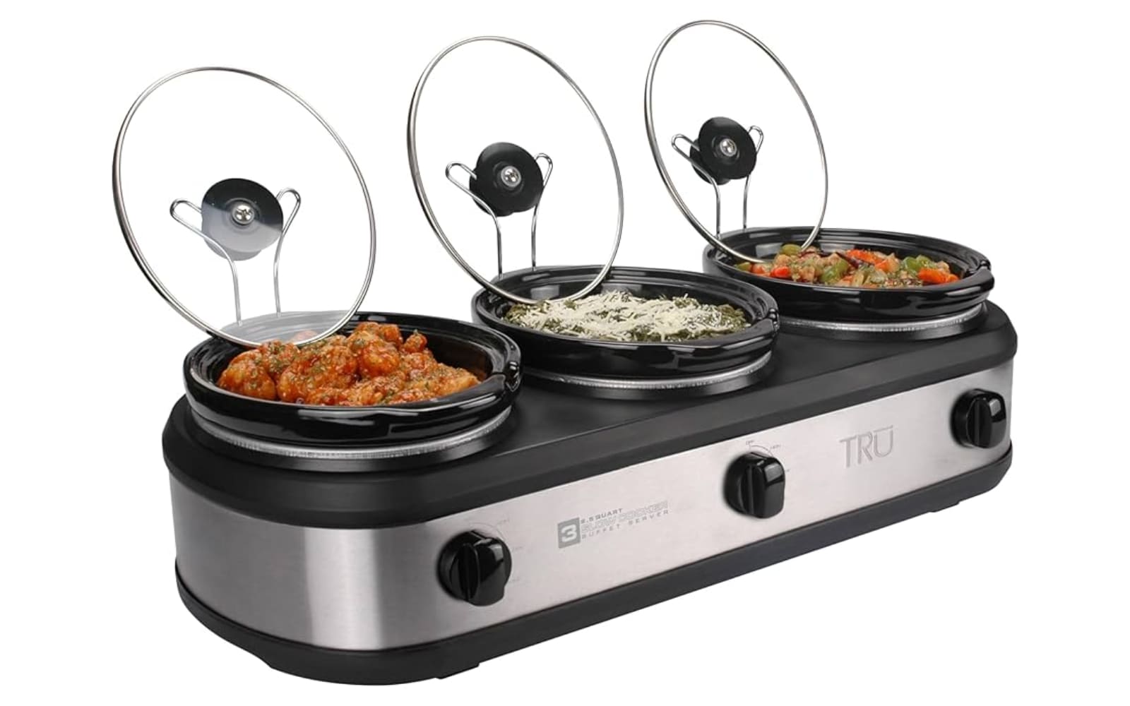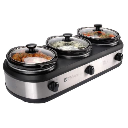 Triple slow cookers with three 2½-quart inserts allow you to cook multiple dishes at once, each with independent low, high, and warm settings, making them ideal for entertaining or meal prepping.